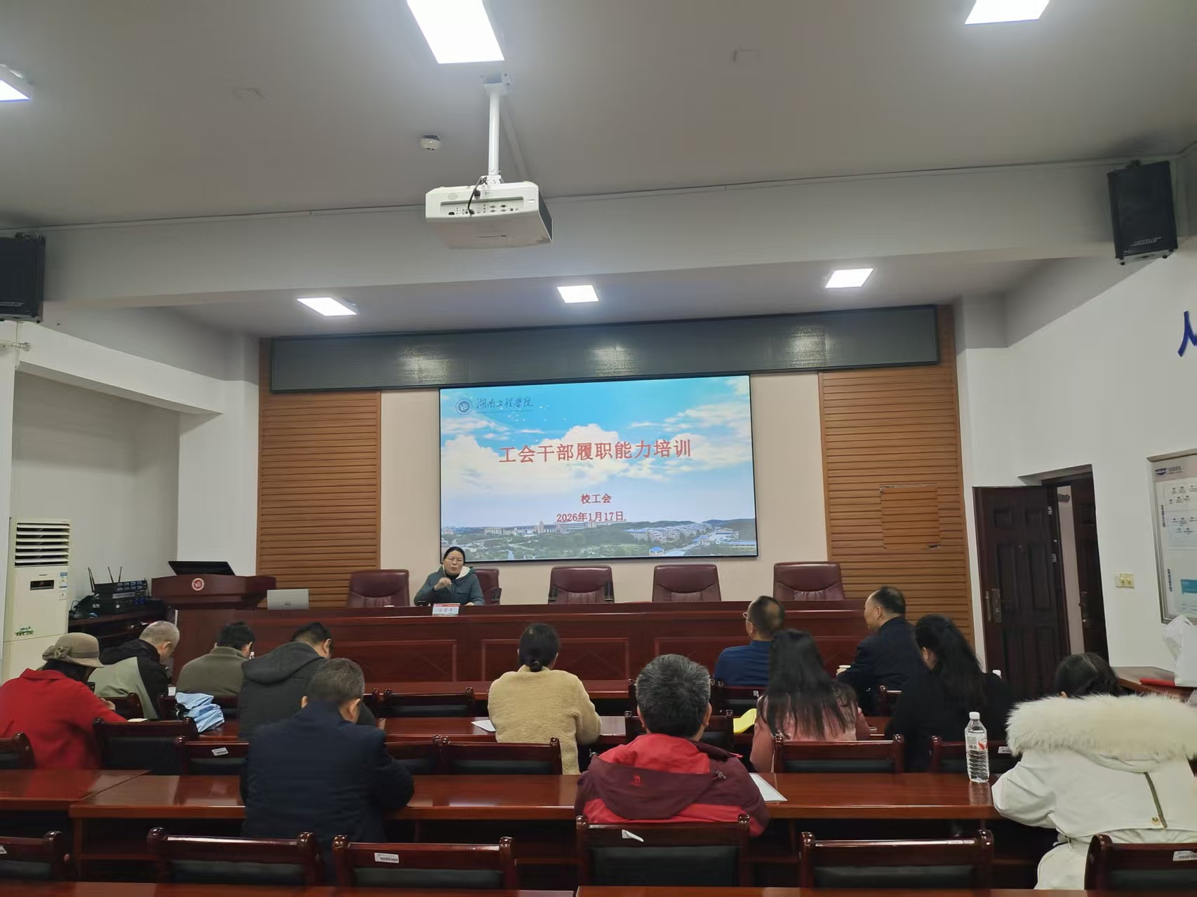 2026年1月17日,校工会举办“工会干部履职能力培训班”,来自校工会委员会委员,各分工会主席、委员,工会工作人员在“理论学习+业务学习+实地教学”三位一体课堂中完成新年第一次集体“充电”,为助力学校“135工程”建设积蓄动能。